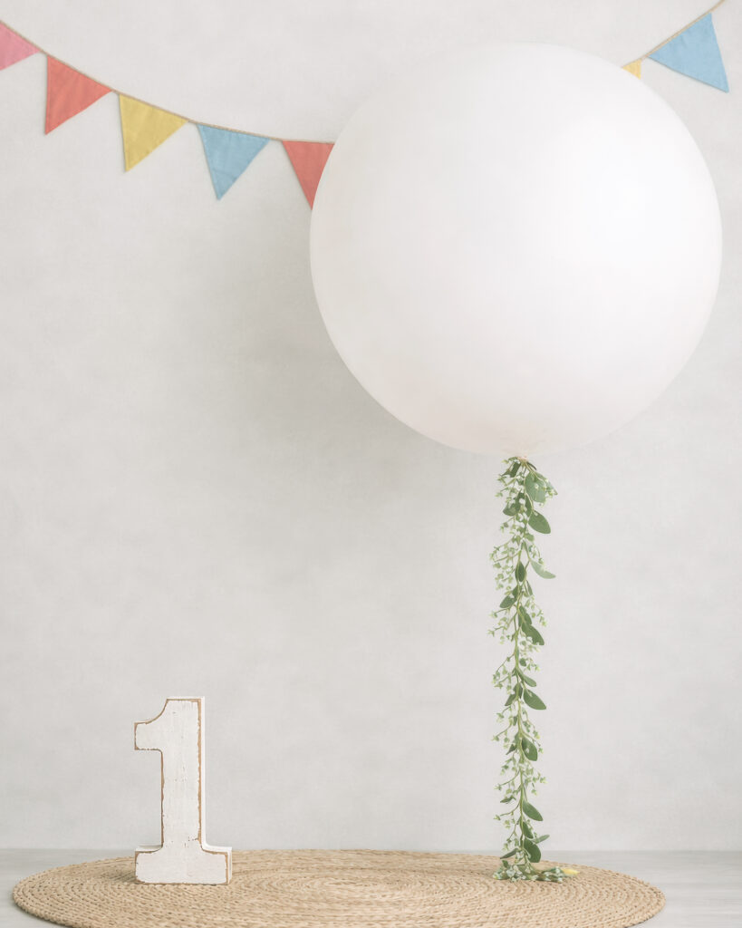 Es una sesión especial para celebrar el primer cumpleaños del bebé en estudio, en un entorno cuidado y tranquilo.